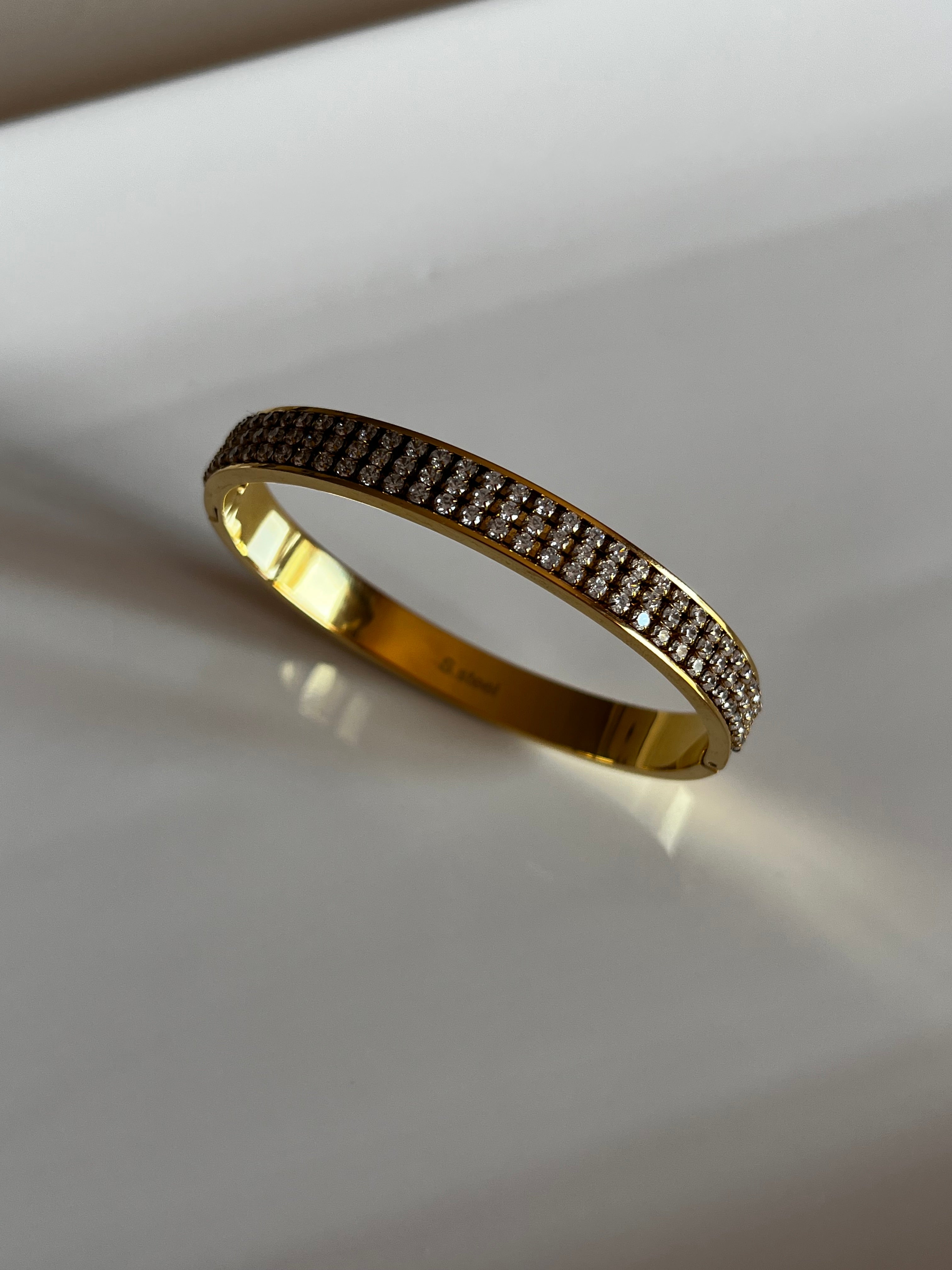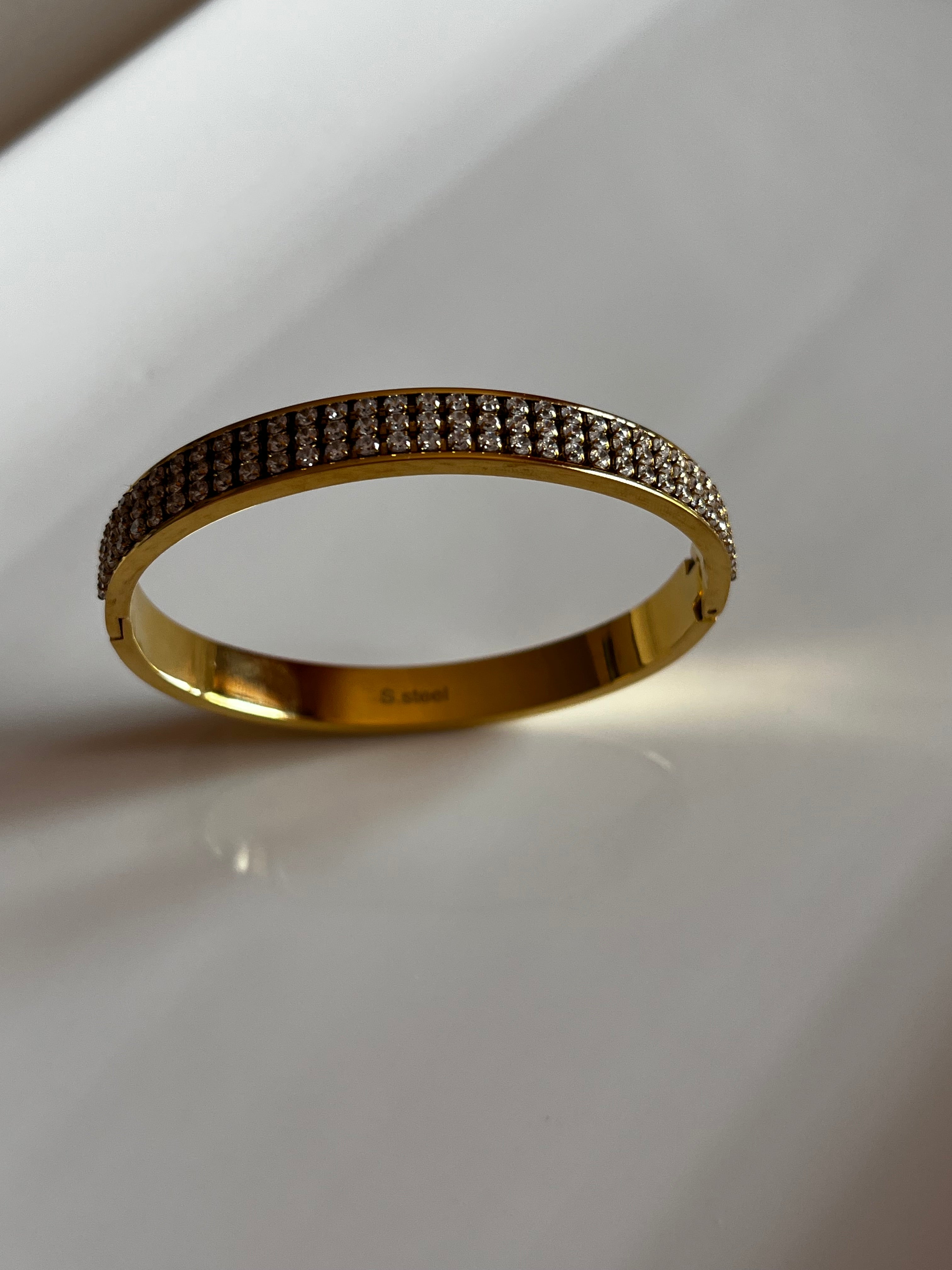 Bracciale Eleganza , realizzato in acciaio inossidabile, resistente all'acqua, profumi e creme. Non scolorisce e mantiene la sua brillantezza nel tempo, per pulirlo ti basterà un panno asciutto.