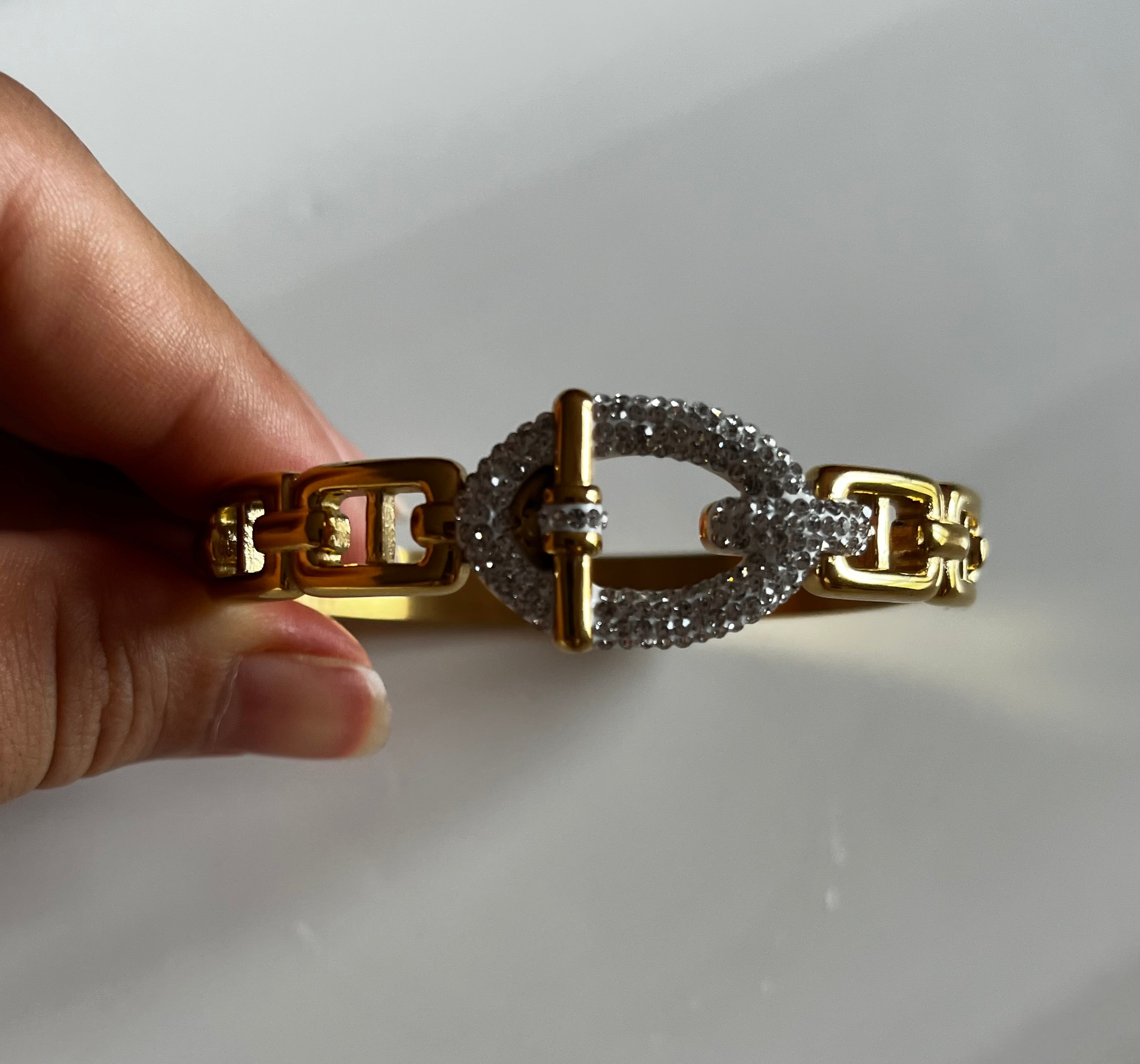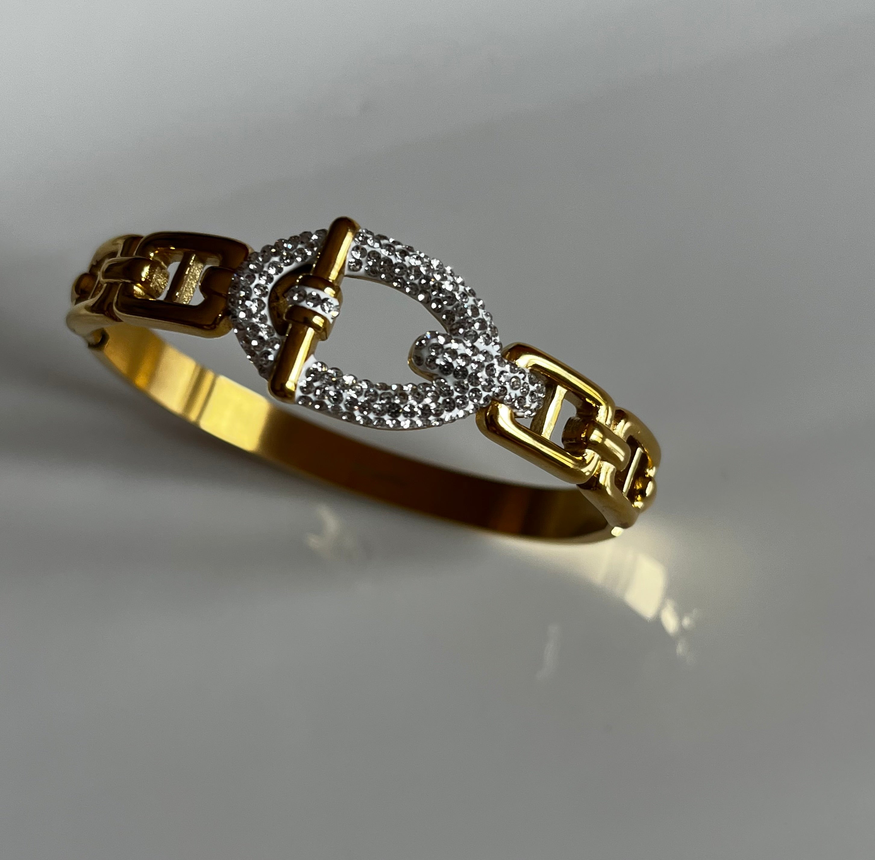 Bracciale Iris, realizzato in acciaio inossidabile, resistente all'acqua, profumi e creme. Non scolorisce e mantiene la sua brillantezza nel tempo.