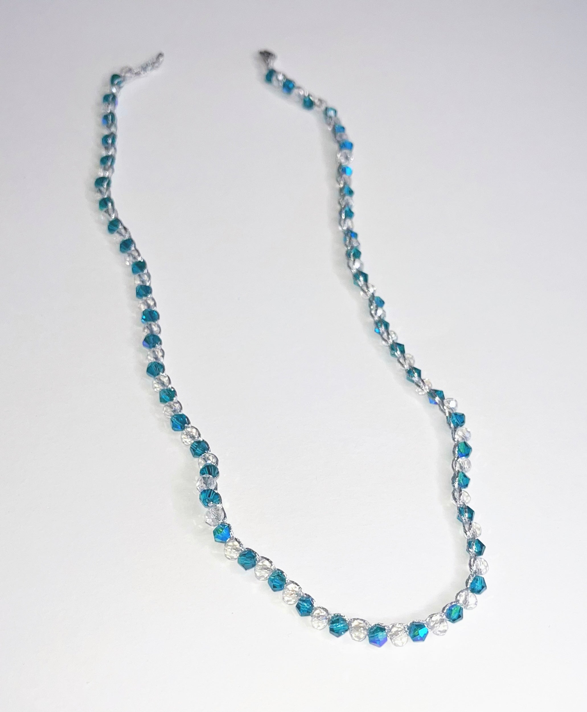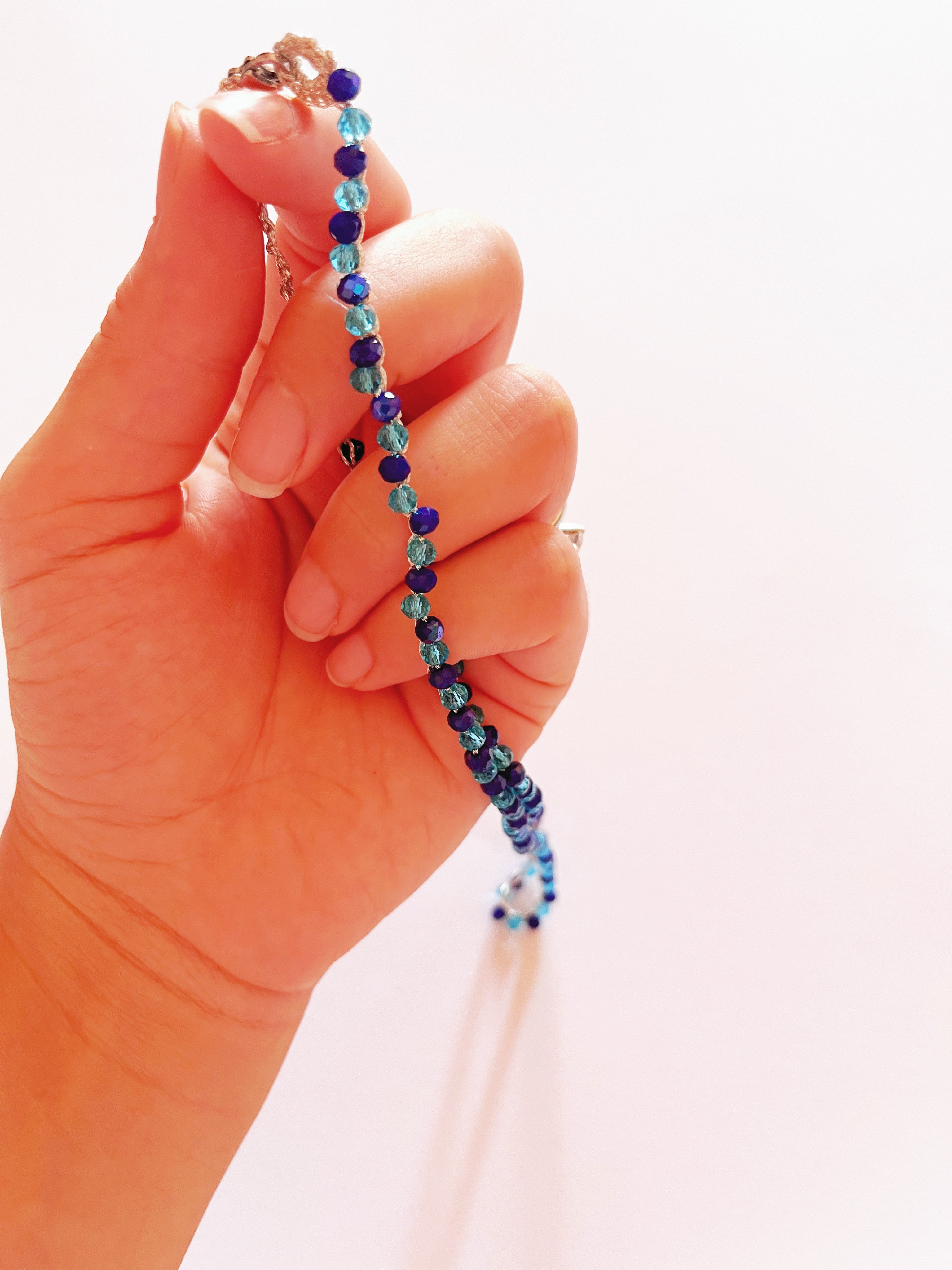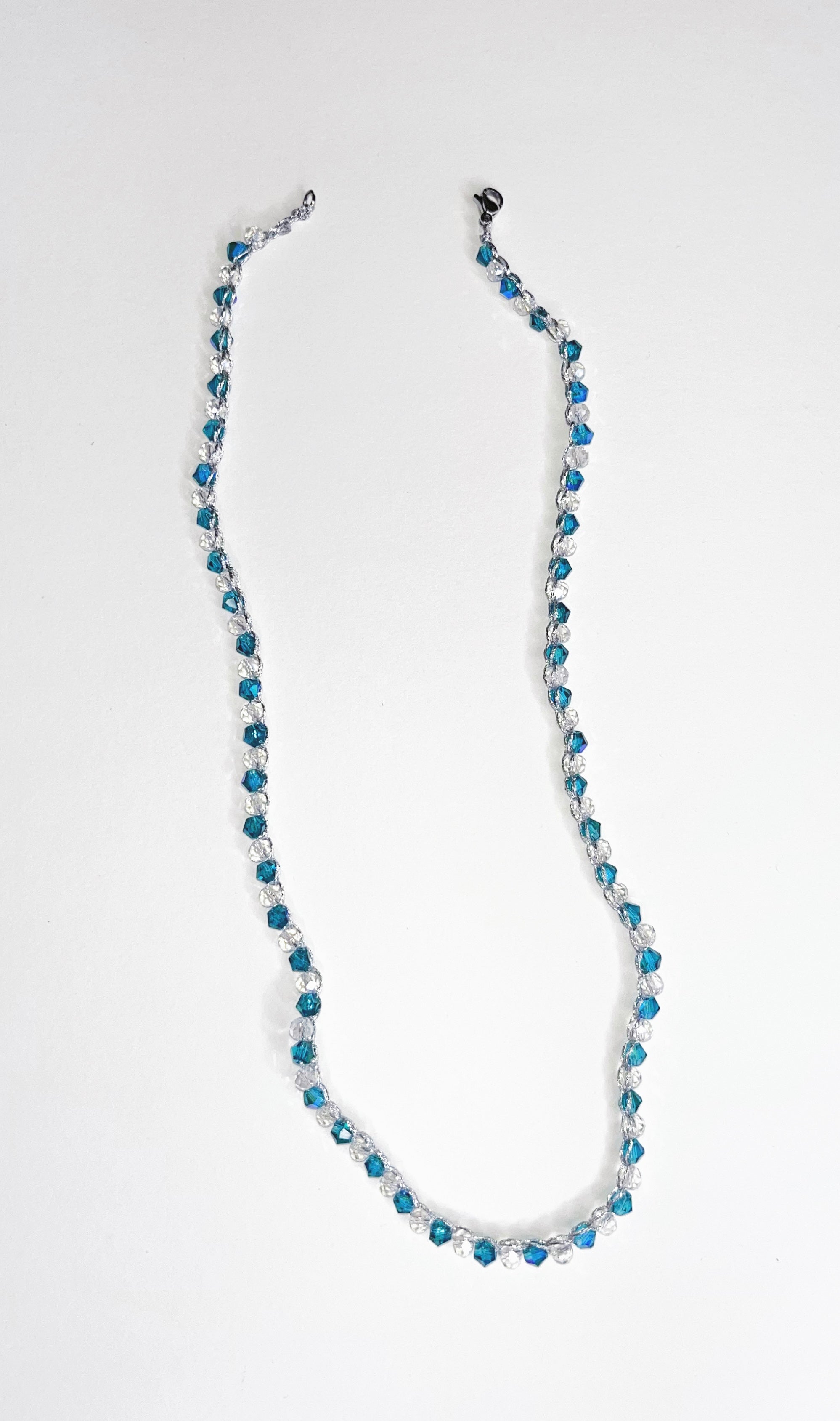 Un girocollo leggero e luminoso come un raggio di sole. Filo di Luce realizzato a mano con la tecnica dell'uncinetto e impreziosito da cristalli di vetro che riflettono delicatamente la luce. Il design minimal su filo unico lo rende perfetto da indossare ogni giorno o a abbinare ad altri gioielli per un effetto elegante e raffinato.
