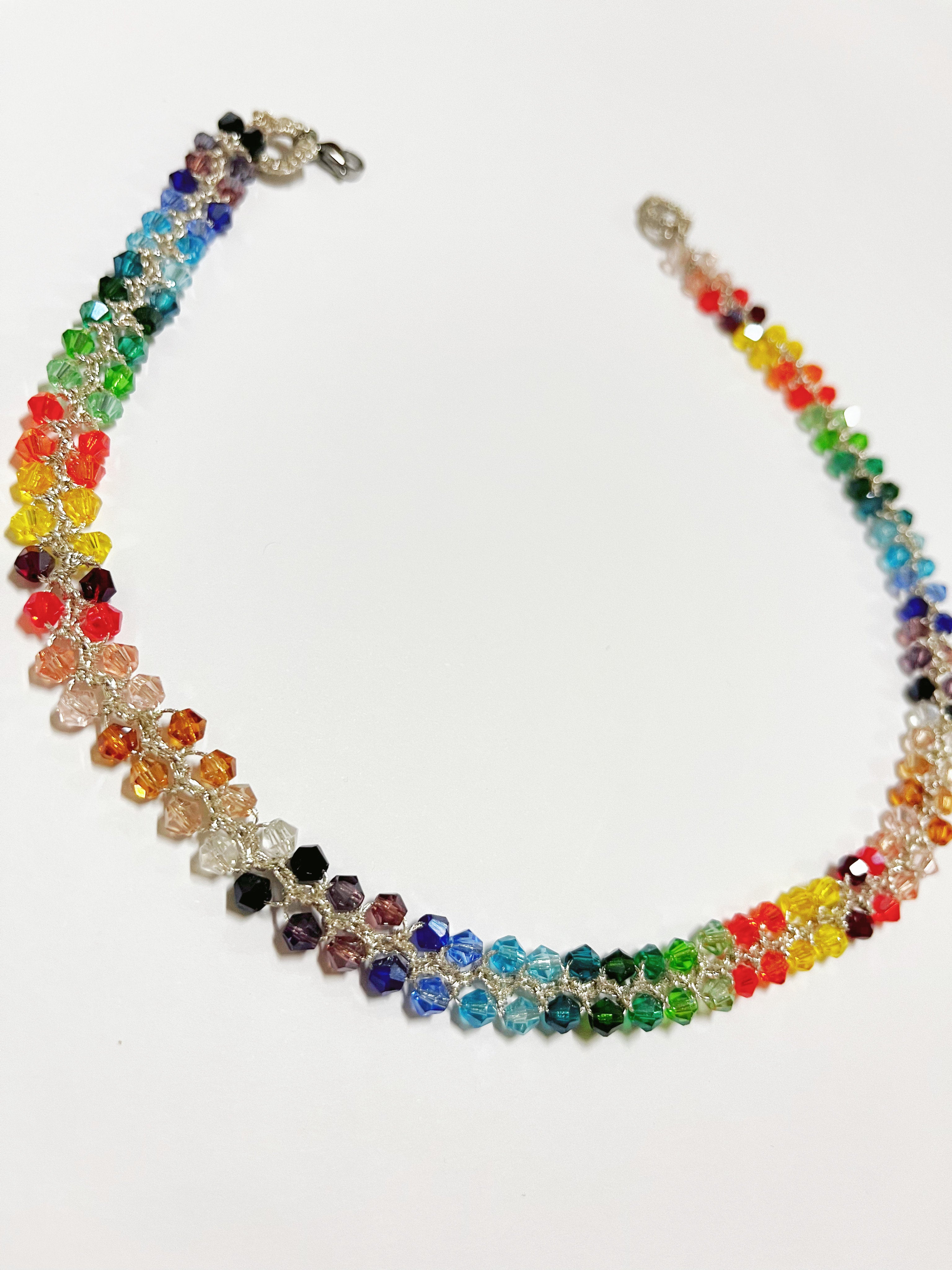 Girocollo NIYA lavorato doppio ad uncinetto, con cristalli di vetro e filato gioiello