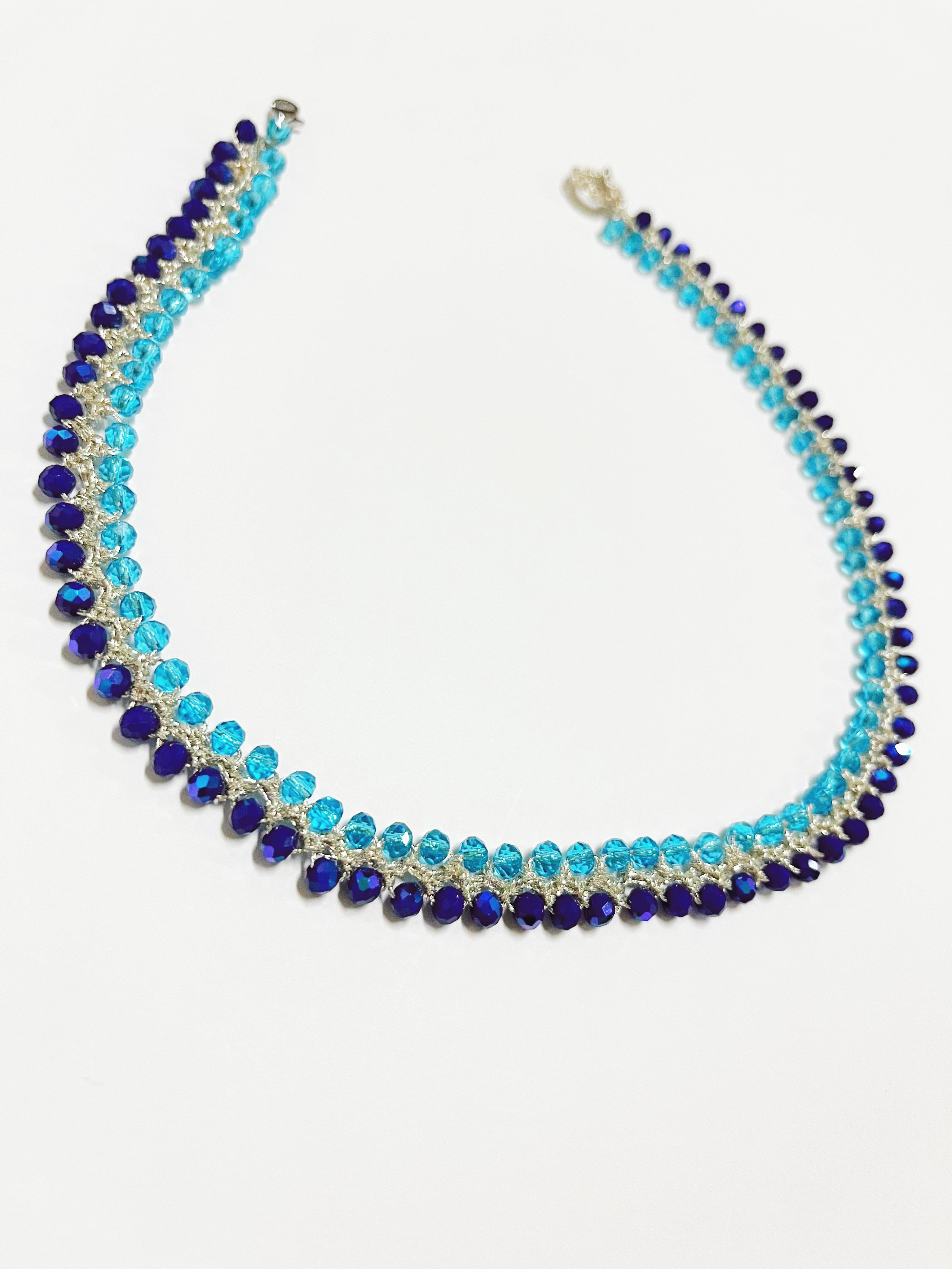 Girocollo niya lavorato doppio ad uncinetto, con cristalli di vetro e filato gioiello.