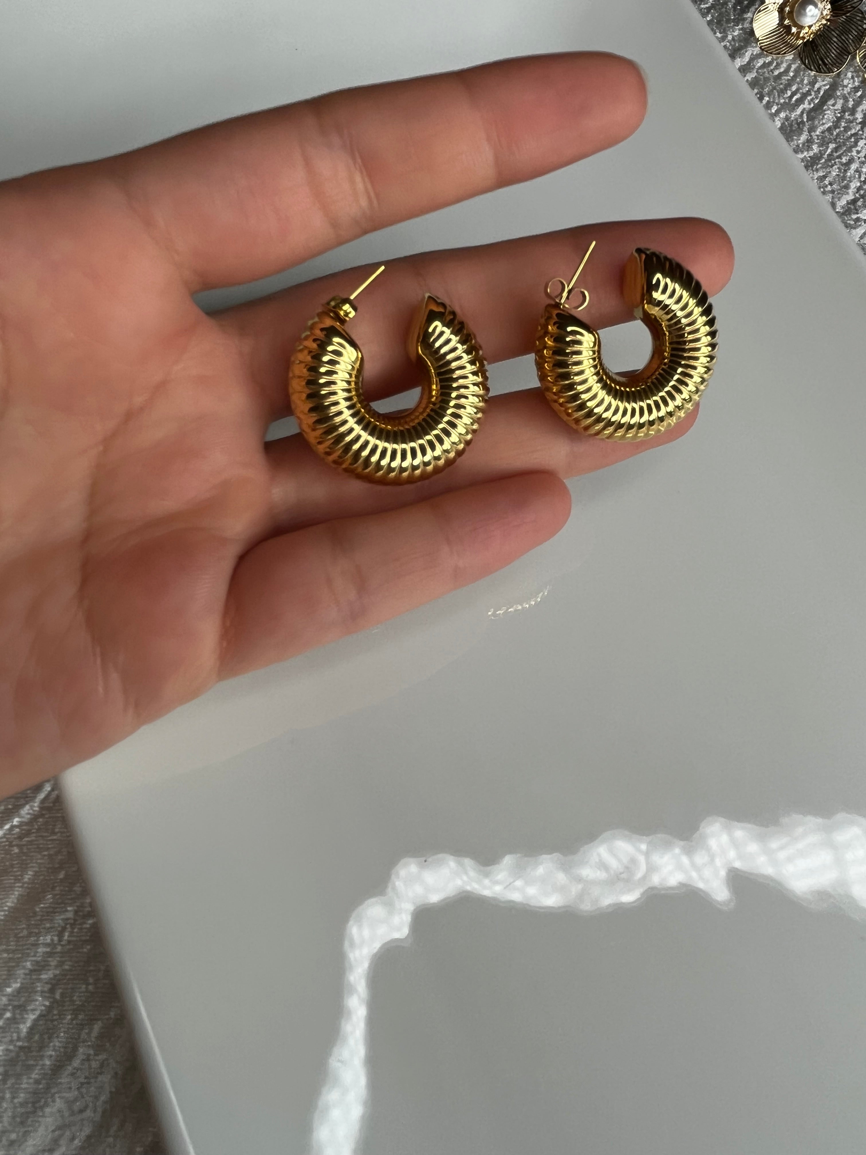 Orecchini Astra, realizzati in acciaio inossidabile, resistenti all'acqua, profumi e creme. Non scoloriscono e mantengono la loro brillantezza nel tempo