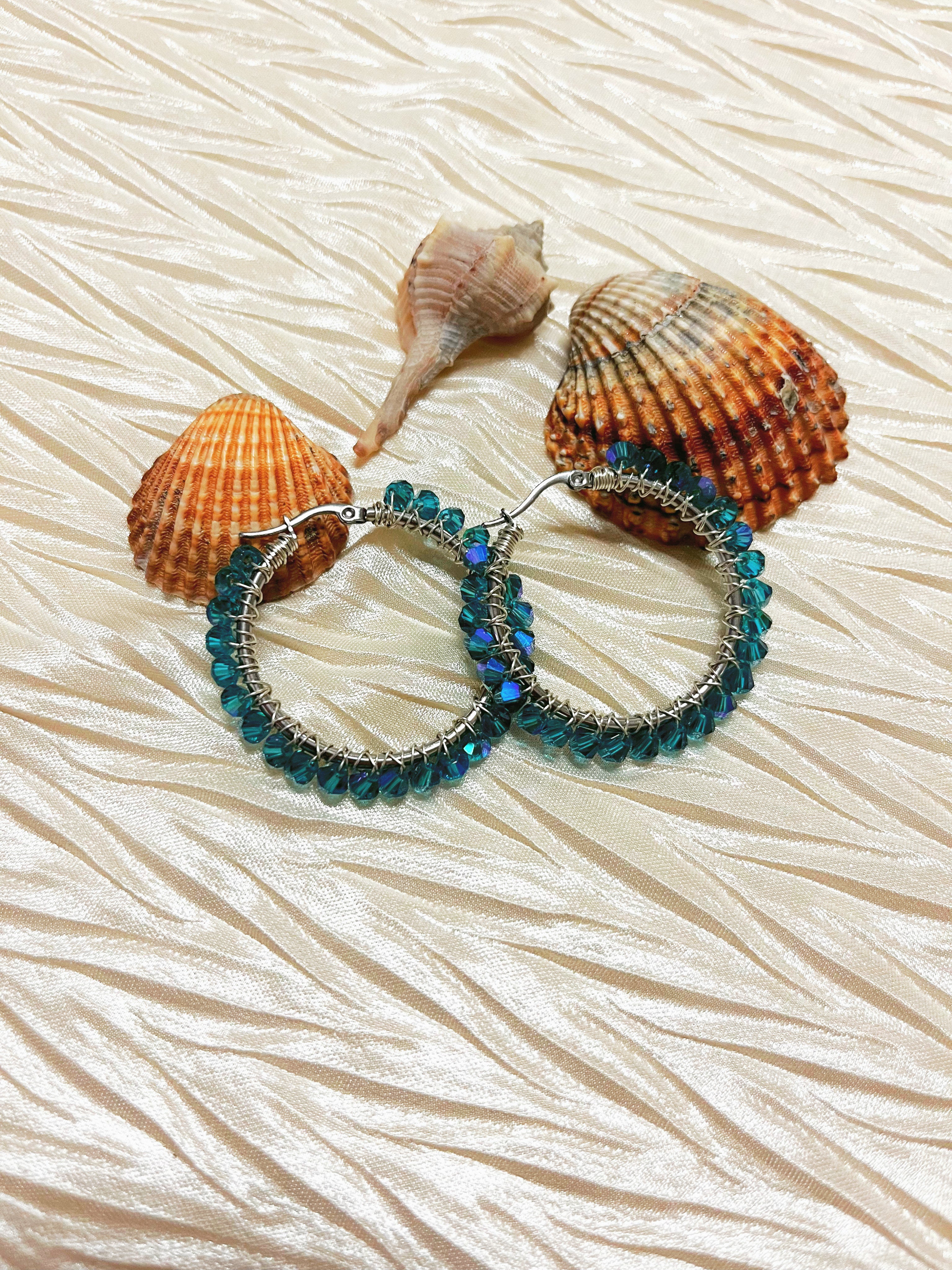 Orecchini Solea, sono stati realizzati a mano in acciaio inossidabile e cristalli di vetro.
